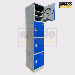 El Locker Plástico ABS 4 puertas (modelo LKP-100-4) es una solución ideal para entornos con condiciones de alta humedad y calor. Fabricado con material ABS reciclable, ofrece alta resistencia al impacto, es fácil de mantener y tiene un acabado brillante. Disponible en color azul, es perfecto para uso modular en diversas aplicaciones industriales, comerciales o institucionales.